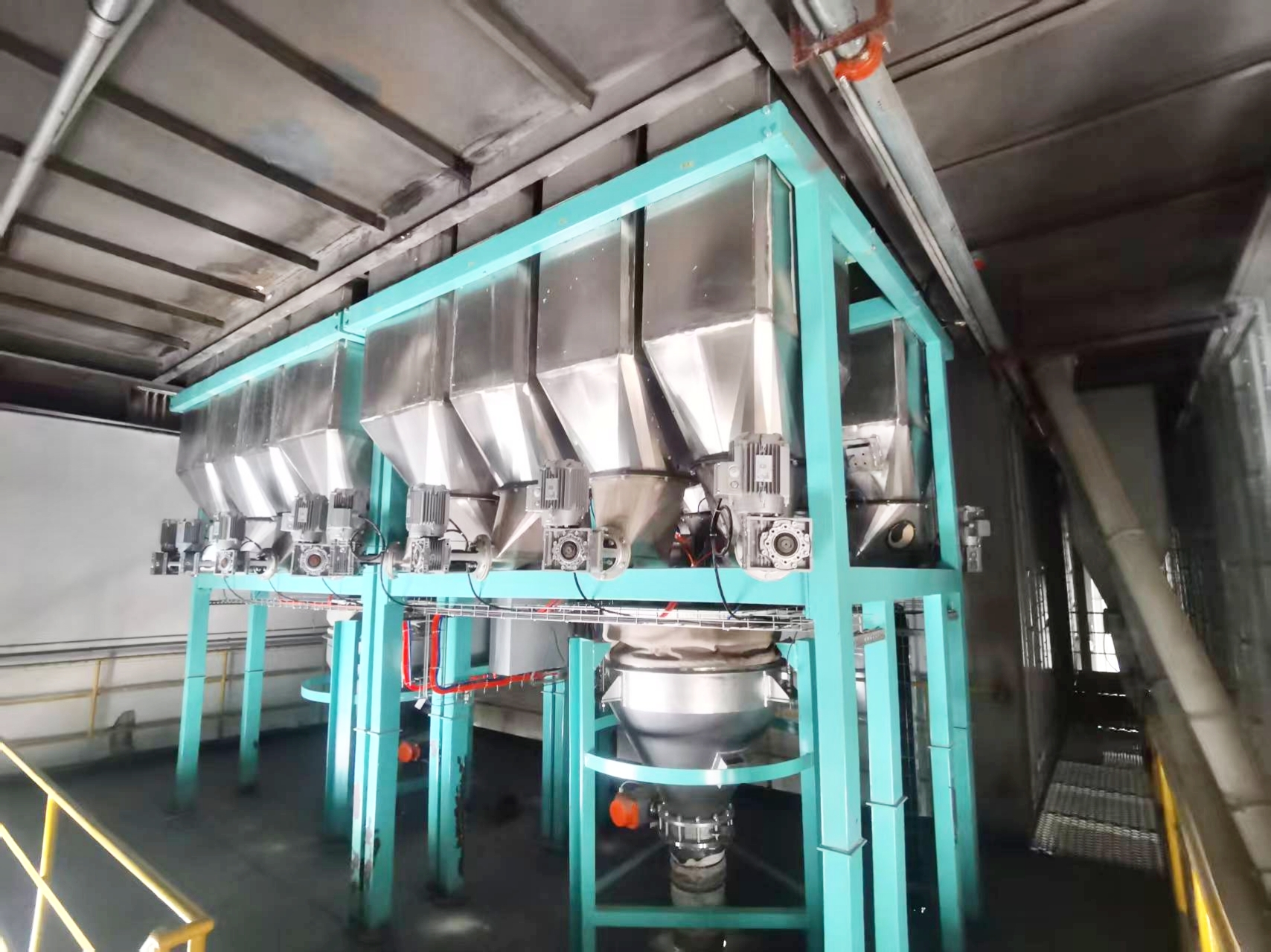 6、每個料箱頂部裝有袋式吸風管,裝料時避免粉塵飛揚,裝料完畢,物料回落料箱內。